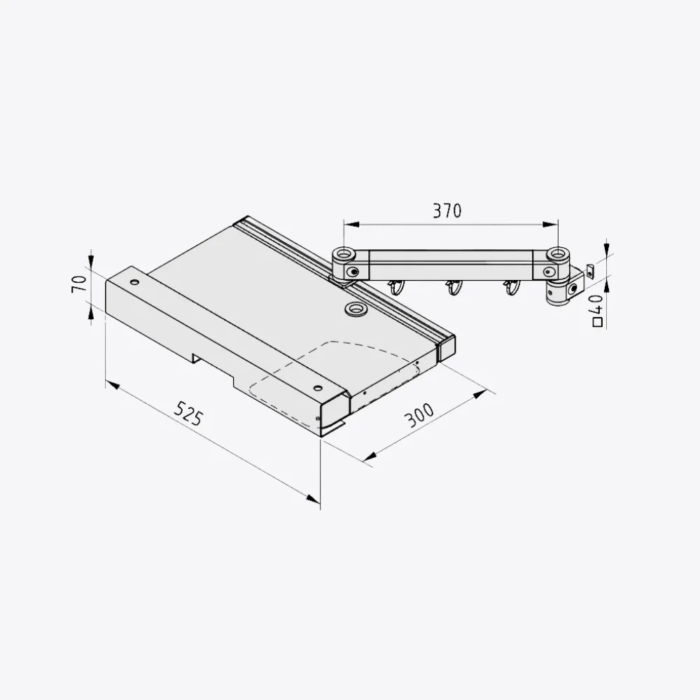 El ARM-300-02-10 es un brazo para teclado con bandeja integrada diseñado para mejorar la ergonomía y el orden en puestos de trabajo industriales y oficinas técnicas. Permite colocar el teclado y el ratón por encima o al lado de la superficie de trabajo, liberando espacio útil en la mesa y acercando los periféricos a la posición más cómoda para el operario. Incluye Pivot Arm 8 370 light, perfil 8 40×40, bandeja de teclado de aluminio 500×200 mm con soporte para ratón abatible, tapas, tuercas en T y tornillería para un montaje rápido sobre el Work Bench System. Con una capacidad de hasta 120 N y construcción robusta en aluminio y acero, ofrece una solución fiable, limpia y fácilmente integrable en bancos de trabajo modulares.