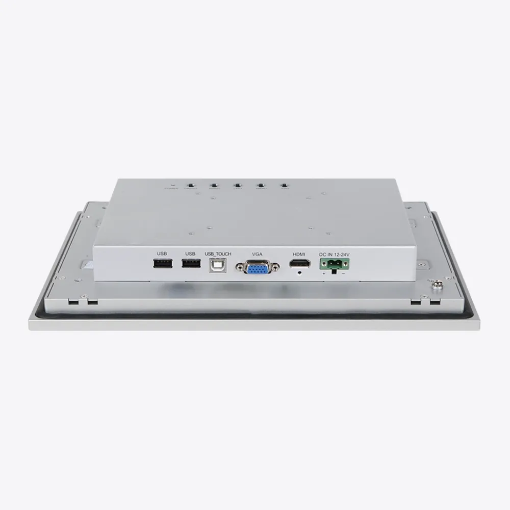 En conectividad de vídeo, la serie Monitores Industriales incorporan entradas VGA y HDMI, facilitando la integración con PCs industriales, PLCs, sistemas embebidos y controladores de automatización existentes. Dispone de interfaz táctil USB (y en algunos modelos también COM) para una rápida conexión plug & play con la mayoría de sistemas operativos industriales y generalistas. La alimentación de DC 12‑24V simplifica el cableado dentro de armarios eléctricos y maquinaria, reduciendo costes de instalación y compatibilizándose con fuentes industriales estándar.