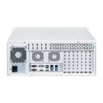En conectividad gráfica, la serie ofrece salida triple de vídeo mediante VGA, HDMI y DisplayPort, permitiendo múltiples pantallas para interfaces HMI, murales de control o visualización de cámaras en paralelo. A nivel de red e I/O, incorpora doble Ethernet Gigabit, múltiples puertos serie (COM), USB 3.0/2.0 y amplio almacenamiento mediante SATA 3.0 y M.2, con opciones de RAID 0/1/5/10 en modelos concretos como Q170, Q470 y Q670 para mejorar rendimiento y redundancia de datos. Todo ello se integra en un chasis de acero galvanizado de alta resistencia con diseño de refrigeración de presión positiva, optimizado para disipar calor y asegurar operación estable.