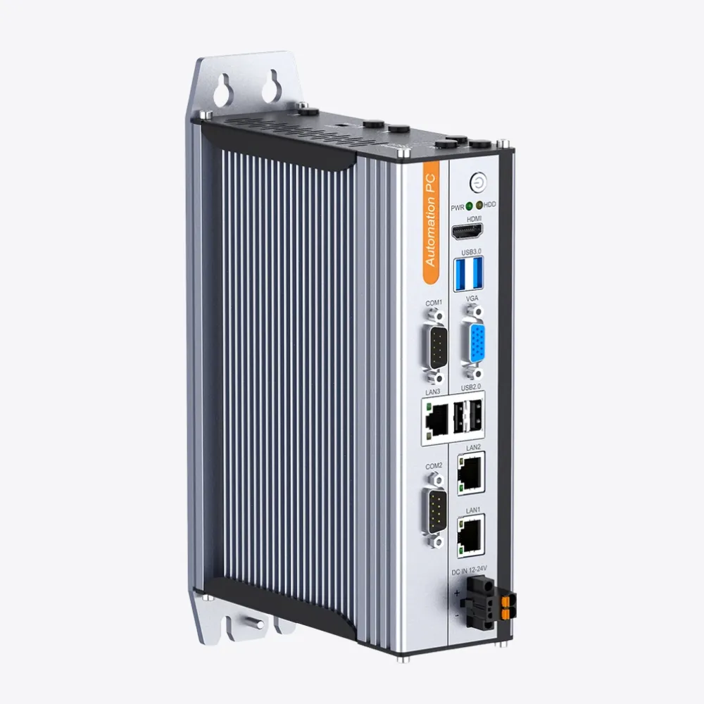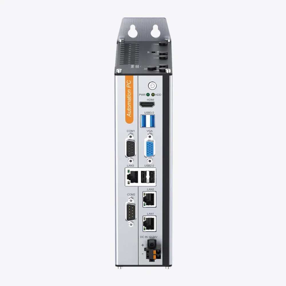 Su arquitectura admite hasta 32 GB de memoria DDR4 y un dispositivo de almacenamiento mSATA, garantizando tiempos de respuesta rápidos y suficiente capacidad para aplicaciones SCADA, historización de datos y software de visión artificial. El chasis en aleación de aluminio‑magnesio, sin ventilador y formato “book style” para armario, mejora la disipación térmica, reduce el mantenimiento y evita la entrada de polvo, prolongando la vida útil del sistema en funcionamiento continuo 24/7.
