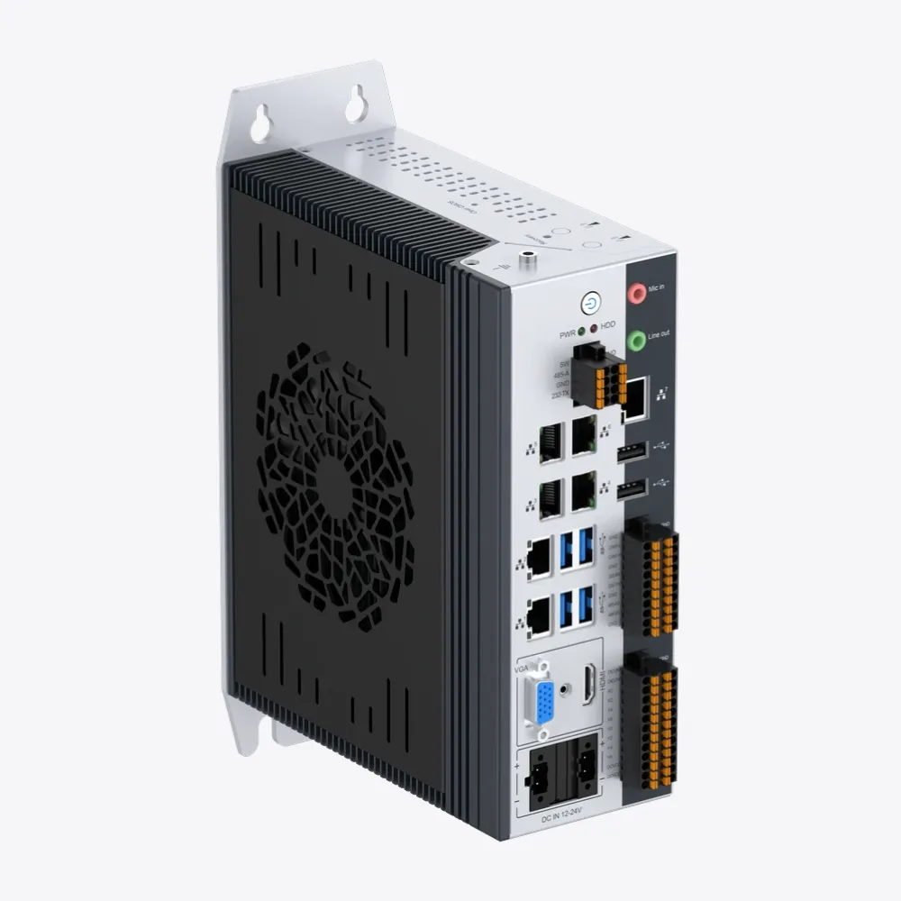 El PC Box de Nodka PCB-NP6120 es un PC industrial de vanguardia, específicamente optimizado para tareas de procesamiento intensivo en el entorno de la automatización y la visión artificial. Esta plataforma robusta está construida sobre un chasis de aleación de aluminio-magnesio y cuenta con refrigeración asistida por ventilador, garantizando un rendimiento óptimo incluso en rangos de temperatura extremos, desde -20°C hasta 60°C.