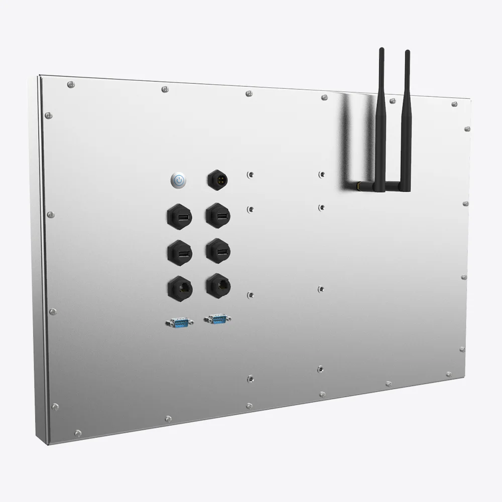 La gama se ofrece en dos versiones: B9 con Intel Core i5‑1145G7E y BA con Intel Celeron J6412, ambas basadas en arquitecturas de bajo consumo Whiskey Lake y Apollo Lake. La versión i5 admite hasta 64 GB de RAM DDR4, mientras que la Celeron soporta hasta 32 GB, con almacenamiento NVMe hasta 4 TB, suficiente para gestionar SCADA, MES, trazabilidad, históricos de producción y aplicaciones de control de procesos exigentes. El rango de pantallas abarca de 12,1″ a 32″, con resoluciones desde 800 x 600 hasta Full HD 1920 x 1080, permitiendo seleccionar el formato y aspecto de imagen más adecuado para cada línea de producción o sala blanca.