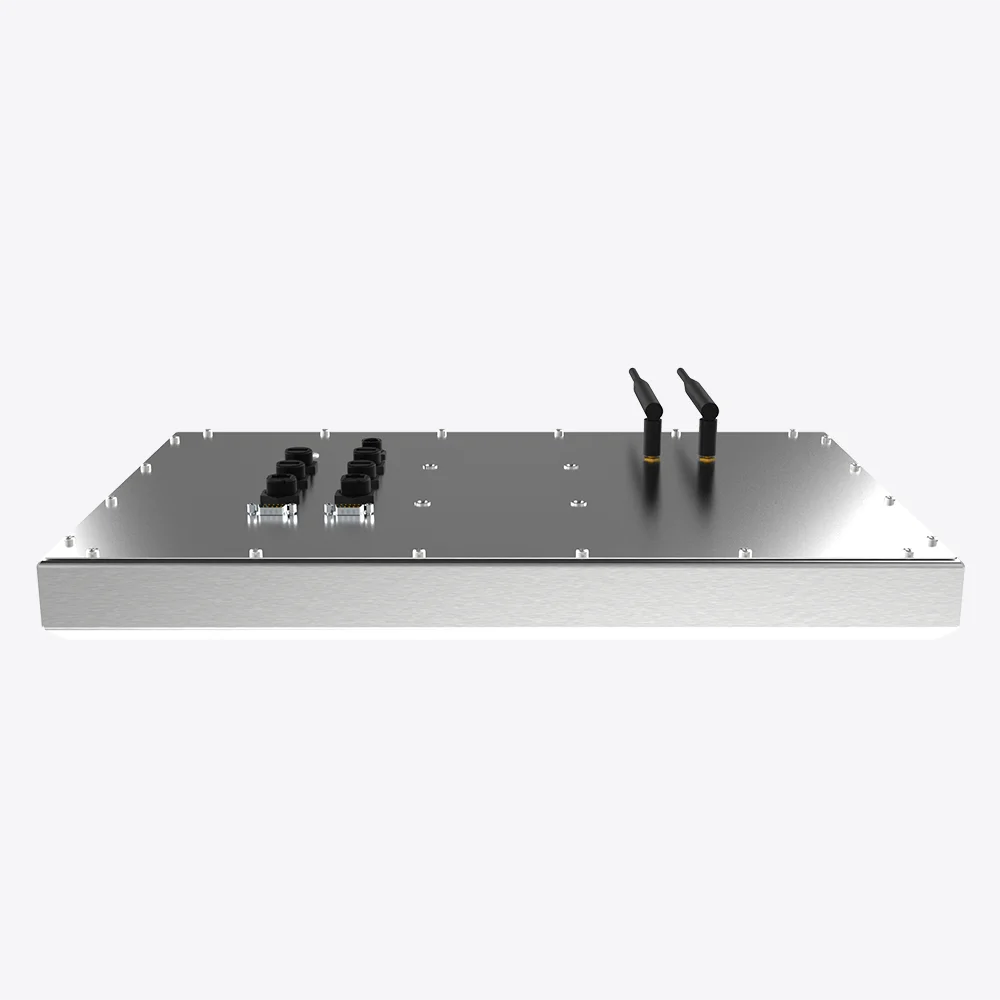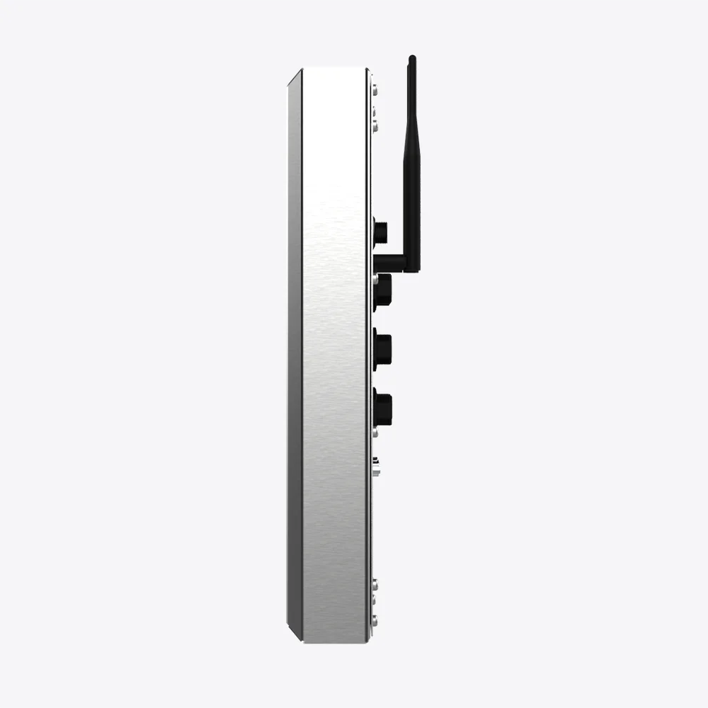 En conectividad, el Hybernis incluye 2 puertos Gigabit LAN, 4 x USB 2.0, 2 x RS232/422/485, alimentación 12–24 VDC, así como opción de Wi‑Fi/Bluetooth con doble antena trasera para comunicaciones inalámbricas seguras en planta. El sistema es fanless, reduciendo mantenimiento y puntos de entrada de suciedad, y está pensado para funcionar de forma continua en entornos de alto riesgo, con fiabilidad 24/7.