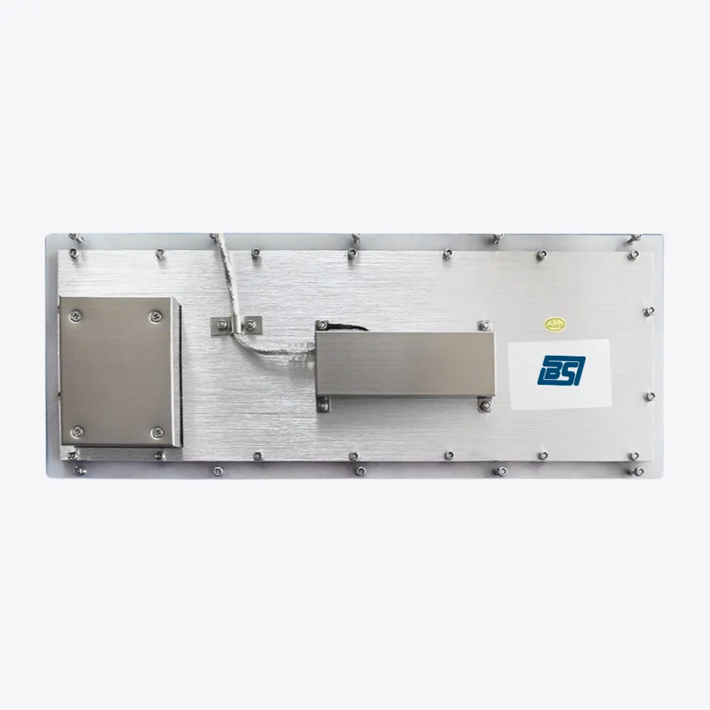 El BKY-A361TP-FN es un teclado industrial empotrable de acero inoxidable diseñado específicamente para operar de forma fiable en condiciones extremas, tanto en exteriores como en interiores industriales. Incorpora 85 teclas (incluidos 2 botones de ratón) en un formato compacto, junto con un touchpad sellado y robusto con función de scroll opcional, que permite un posicionamiento rápido y preciso del cursor sin necesidad de ratón externo. La placa frontal de 1,5 mm de acero inoxidable cepillado y la placa trasera de aluminio oxidado de 3 mm proporcionan una estructura rígida, resistente a impactos y al vandalismo (grado IK08/IK09 según variantes).