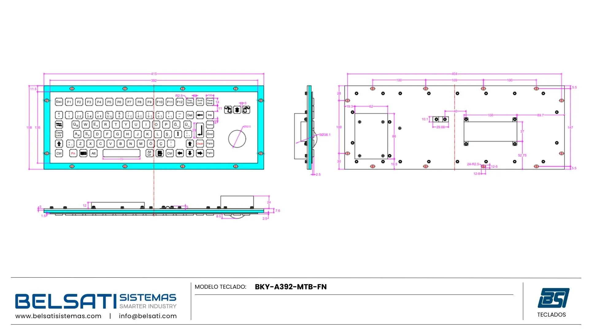 Modelo: TECLADO BKY-A392-MTB-FN