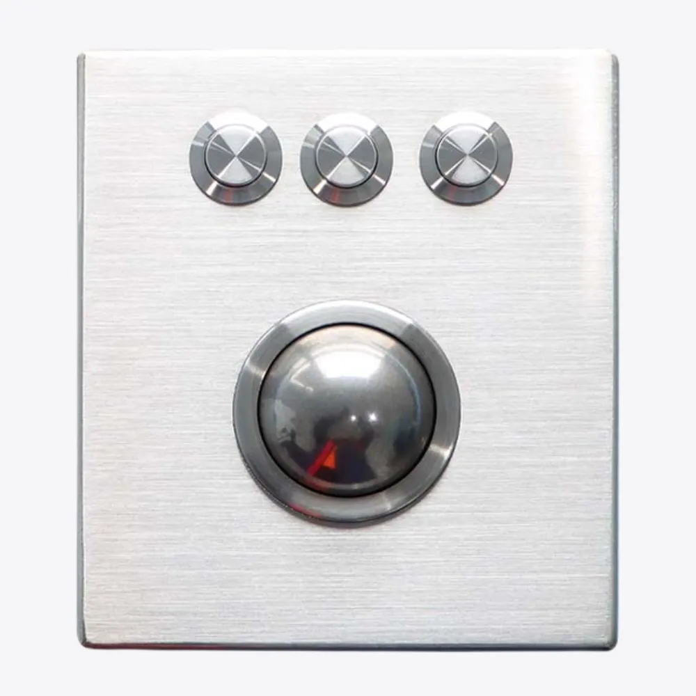 El corazón del dispositivo es una bola óptica de 38 mm con resolución de 800 DPI, que proporciona un posicionamiento del cursor rápido y extremadamente preciso, con un desplazamiento muy suave y silencioso incluso en uso continuado. El módulo de trackball está completamente protegido y blindado por la carcasa de acero inoxidable, lo que prolonga su vida útil por encima de los 2 millones de ciclos de desplazamiento. Los 3 botones sellados de acero inoxidable actúan como ratón completo: clic izquierdo, clic derecho y desplazamiento arriba/abajo mediante el propio movimiento de la bola, ofreciendo una experiencia intuitiva en entornos donde un ratón convencional no es viable.