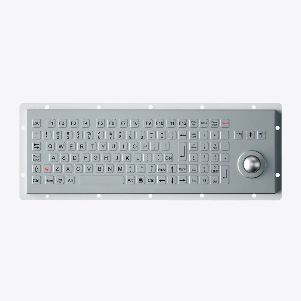 Teclado industrial IP65 con trackball óptico de 25 mm y 107 teclas
